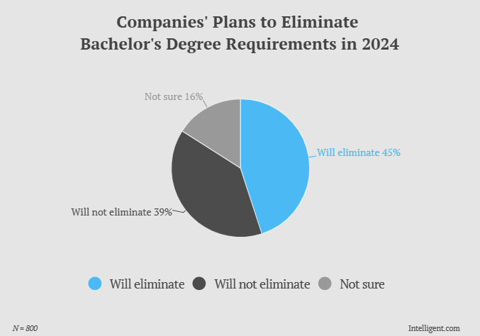 These points align well with recent trends in hiring practices. As an example, according to a November 2023 survey by Intelligent.com, (and there are plenty out there) a significant shift is occurring in companies' approach to degree requirements. With 55% of companies eliminating bachelor’s degree requirements in 2023, primarily for entry-level roles, the necessity of a specialized recruiting degree becomes further questionable. This trend suggests a broader movement towards valuing skills and experience over formal education, particularly for entry-level positions.