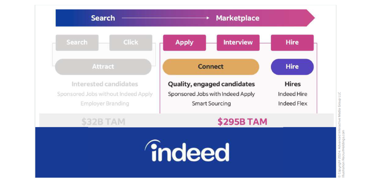 Indeed’s parent company, Recruit Holdings, already runs a large international staffing business. By shifting to a staffing-like model, the take is that Indeed is eyeing the $327 billion staffing industry, a significant leap from its current $32 billion market in recruiting ads.