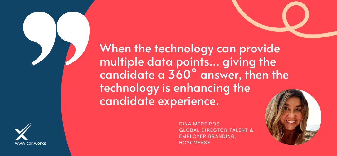 When the technology can provide multiple data points via video or an employee story, social media post, etc. giving the candidate a 360 degree answer, then the technology is enhancing candidate experience. ~ @Dina Medeiros, Global Director Talent & Employer Branding, HoYoverse